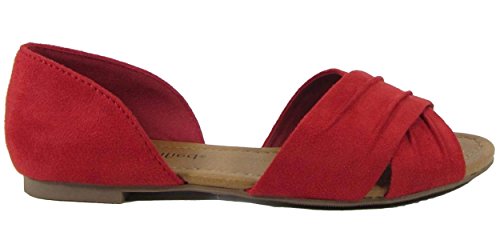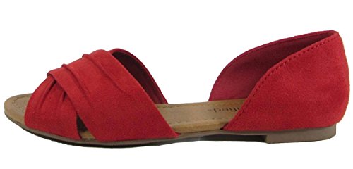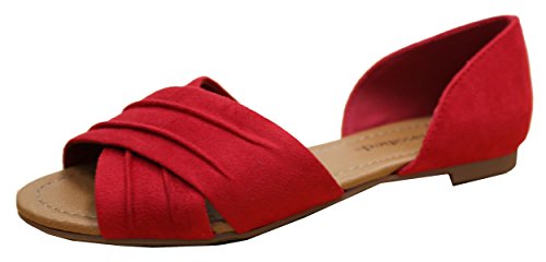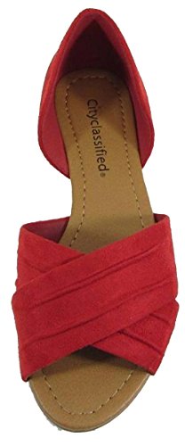 Product DescriptionCity Classified Women's open toe flats feature faux suede throughout, ruched detailing on crisscross design low .5" heel. Imported.0