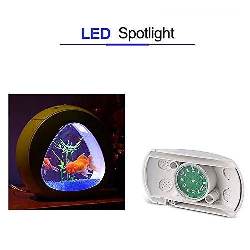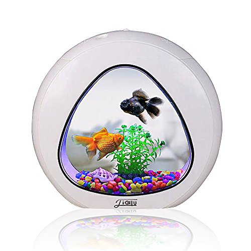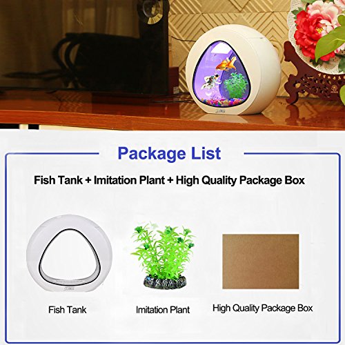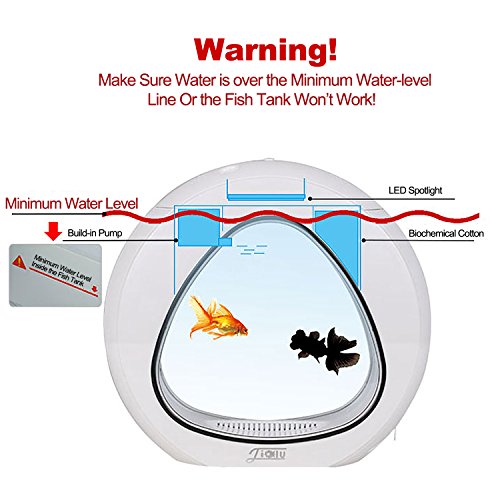 Just Choose Us: ?Made of acrylic, clear as glass but won't break easily. Special plastic with polish technique, definitely not a cheap looking fish tank. ?The materials adopted are healthy and do not have exotic smell. Great for your fish. ?LED light can sooth the fish and light your way at night, energy saving. ?Build in oxygen increasing pump, improve the water quality in the fish tank automatically without changing the big eco-system, hassles all gone. ?Biochemical filter make the water clearer for your fish. ?Thoughtful design, 2 fish feeding holes, feed your fish without open the fish tank cap. ?group of venting holes provide your fish an great environment. ?USB port, with an Ac adaptor, can be put on your office desk. The best decor and relax you can get. ? build-in draining pipe, no need to clear the fish out every time you change the water and clear the fish tank.