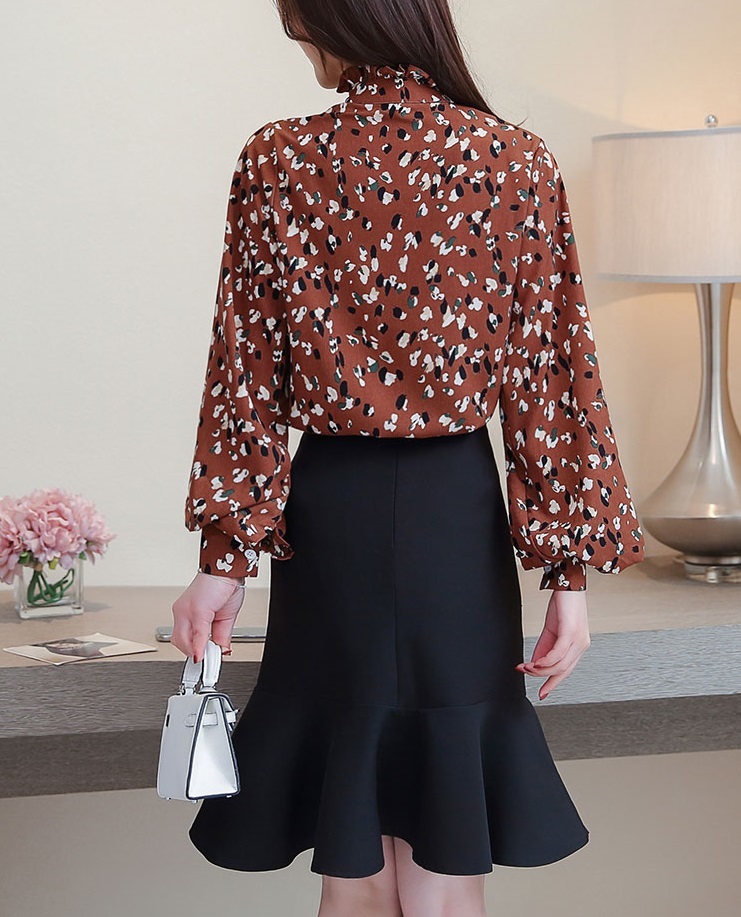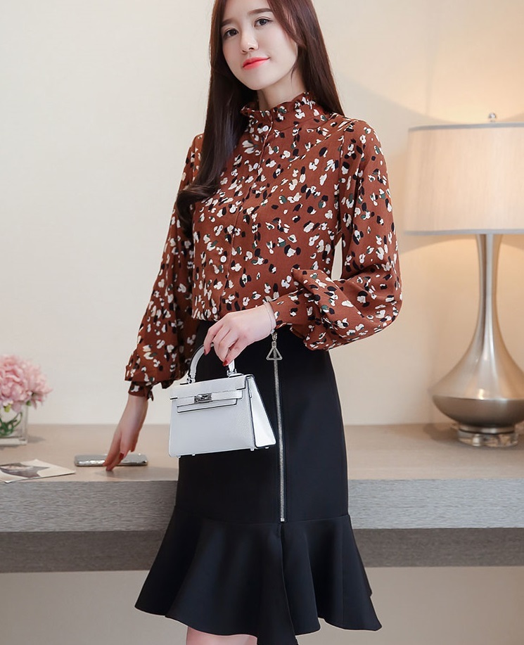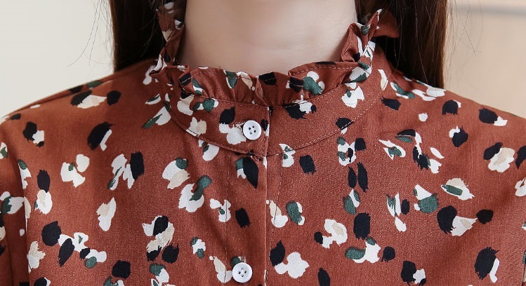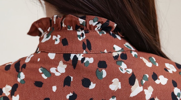 プチハイネック部分にはフリルをあしらってきちんと感をプラス。