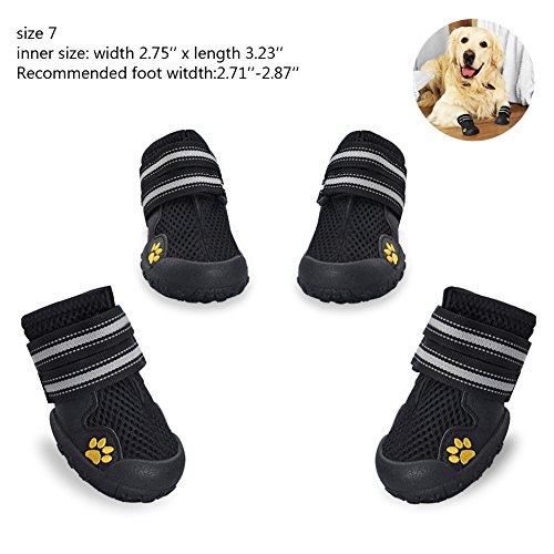 -. Title : Dog Boots Waterproof Pet Mesh Shoes Breathable Dog Shoes Paw Protectors with Reflective Velcro and Rugged Anti-Slip Sole