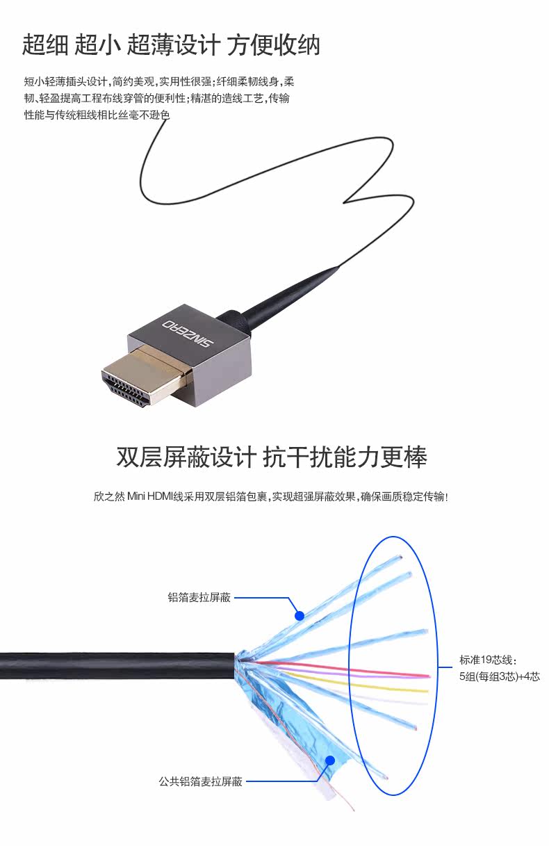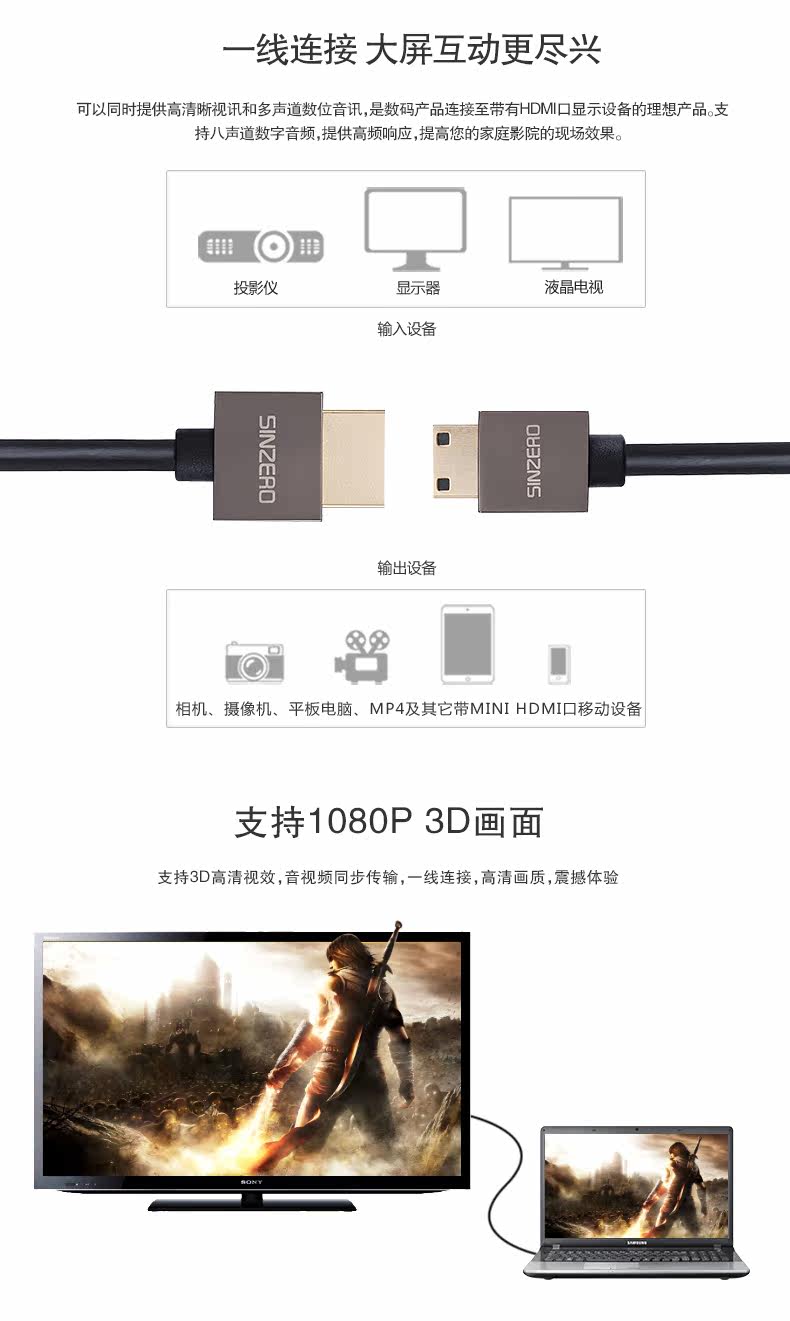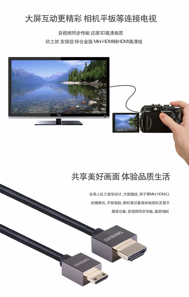 Mini HDMI线 小转大摄像机台电平板接电视1.4版 hdmi转迷你高清线