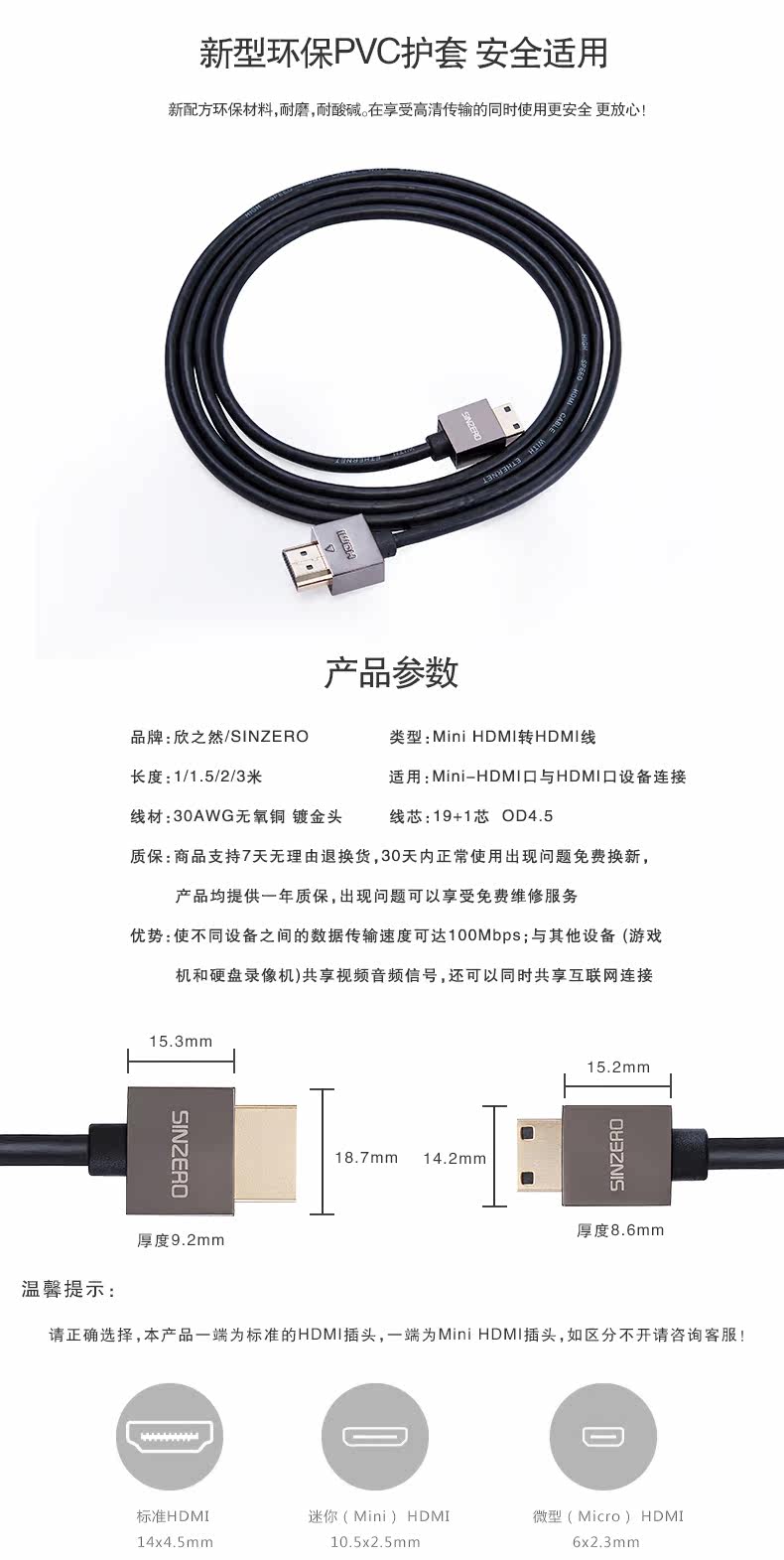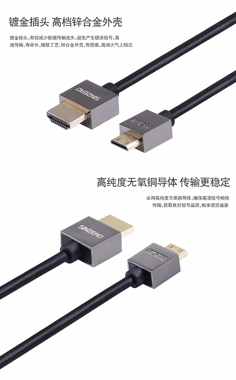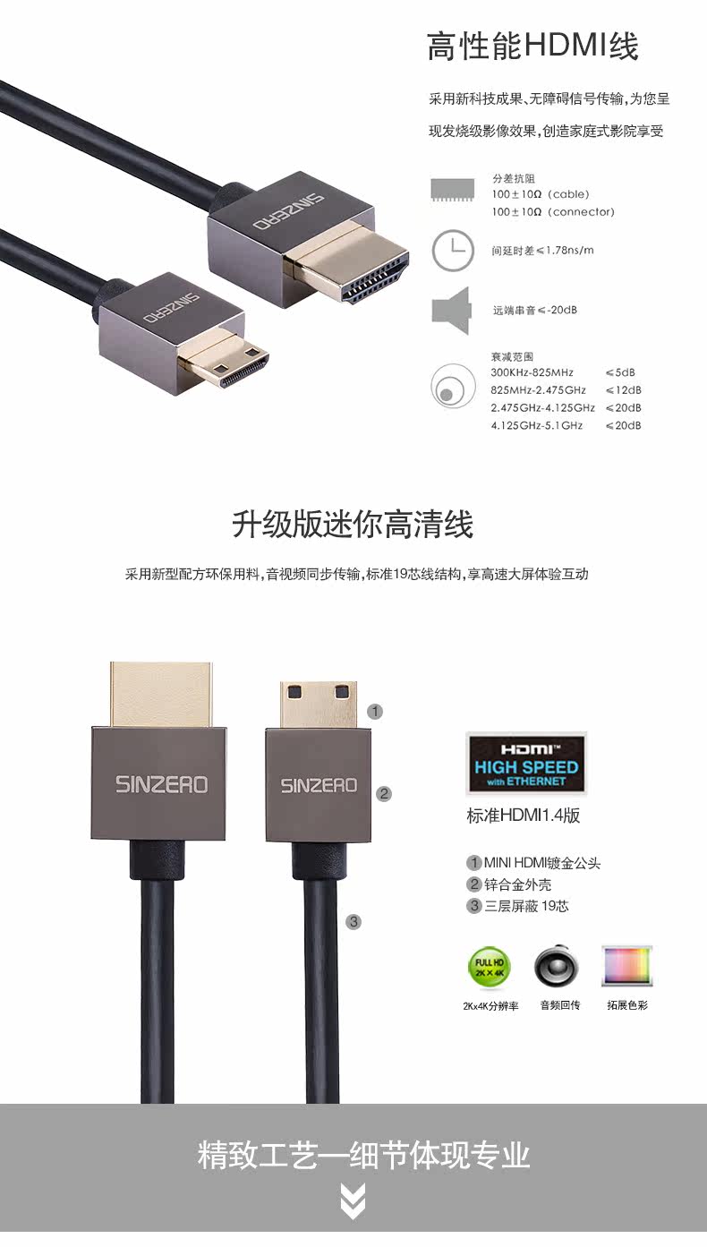 Mini HDMI线 小转大摄像机台电平板接电视1.4版 hdmi转迷你高清线