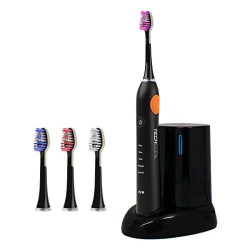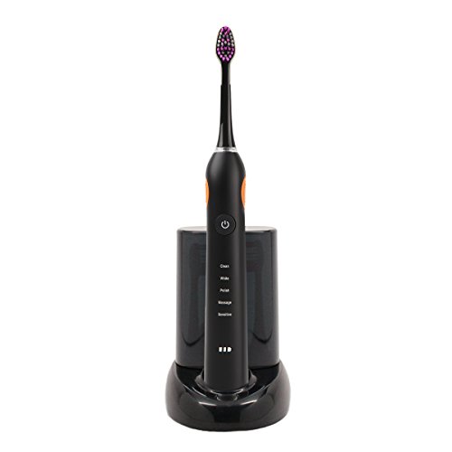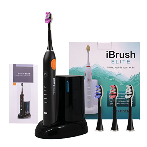 Electric Rechargeable Toothbrush-iBrush Elite SonicWave with UV Sanitizer (Black) 3 Extra Brush Replacements Included