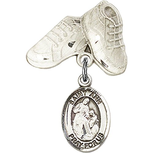 -. Title : Sterling Silver Baby Badge with St. Ann Charm and Baby Boots Pin 1 X 5/8 inches