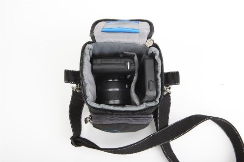 The Think Tank Photo Mirrorless Mover 5 is scaled to fit todays compact, mirrorless cameras. Mirrorless Movers offer top quality materials and craftsmanship that Think Tank is known for, such as metal hardware instead of plastic buckles, high quality fabrics, YKK zippers and a new, magnetic closure. Gear Profile: Fits one small size mirrorless body with small telephoto or pancake lens attached. Example Cameras: Canon EOSM, Leica DLux, Nikon 1 series, Olympus EPM2, EPL5, EP3, Panasonic GF3, Sony NEXC3, or similar sized bodies. Features: Flip-Top lid with magnetic closure provides quick access to gear Removable shoulder strap Rear slot for your belt or a Think Tank belt Easily accessible front zippered pocket for accessories Side pockets (stretchable/gusseted) Internal mesh pocket on the lid for battery or other accessories Grab handle on the lid Poly Ballistic fabric ensures durability Seam-sealed rain cover includedFeature