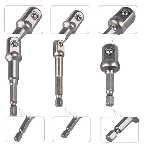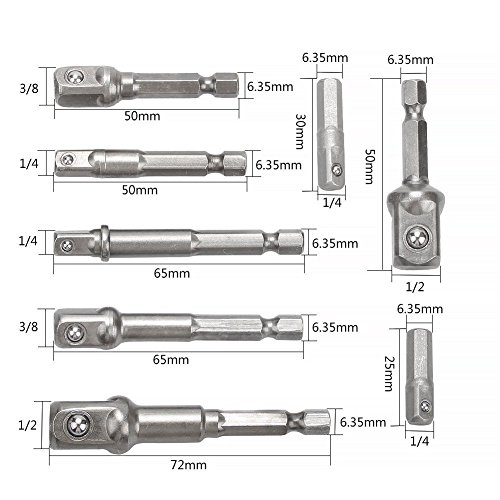 - ✓Includes:8Pcs - 4 x 1/4" drive drill socket adapter, 2 x 3/8"driver bit socket adapter, and 2 x 1/2" drive hex socket adapter each with a 1/4'' hex shaft shank.power hand repair tool.