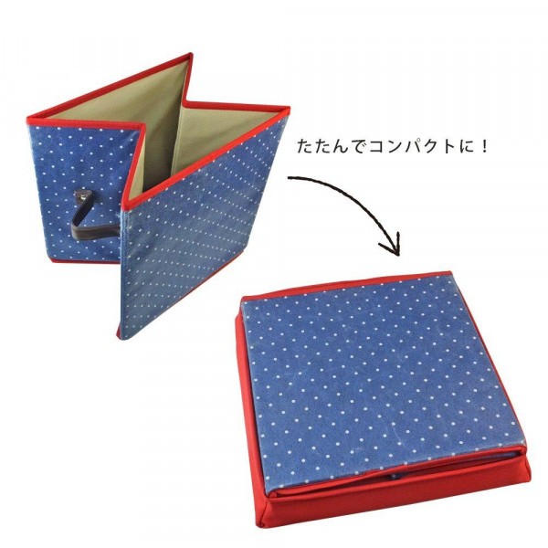 | 便利なイス型の収納ボックス。使わないときは本体を折り畳んで、フタ部分に収納することができます。雑誌や新聞、子供のおもちゃなど、色々な用途でお使いいただけます。 |