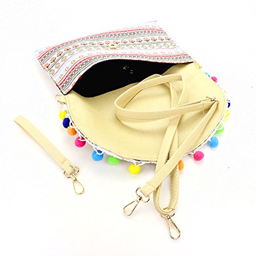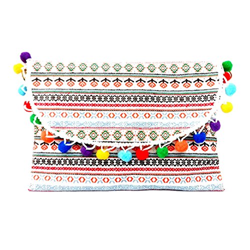 (Ginga's Galleria)/Accessories/Handbags/DIRECT FROM USA/White Multi-Color Pom Pom Wristlet Clutch Bag with Straps 342311