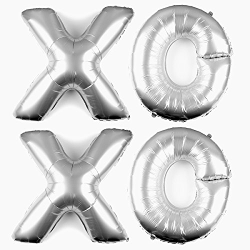 XOXO Balloons Huge 40 Inch Letters Wedding or Engagement Party Decorations (Silver)