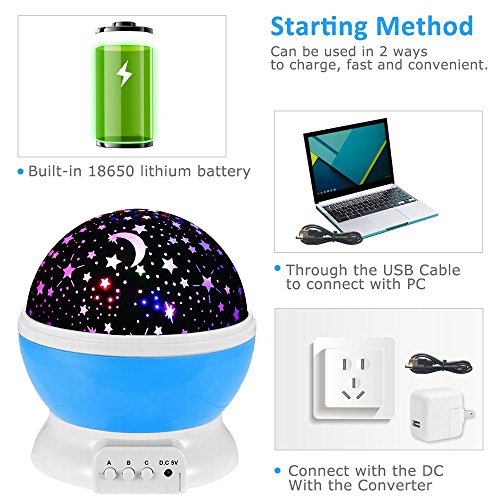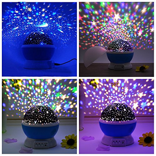 ❀4 LED light 4 mode 9 light color changing, 360 degree rotation, movable hemispherical cap, star - month projector or colored night light
