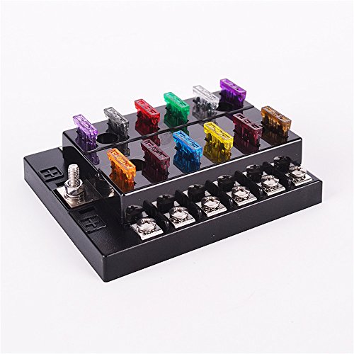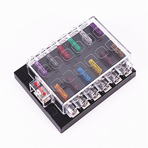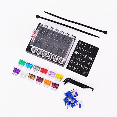 IZTOSS DC 32V 12 Way Terminals Circuit ATC ATO Car Auto Blade Fuse Blocks Box Holder with 10 pcs fuse,fuse puller and 10pcs connectors