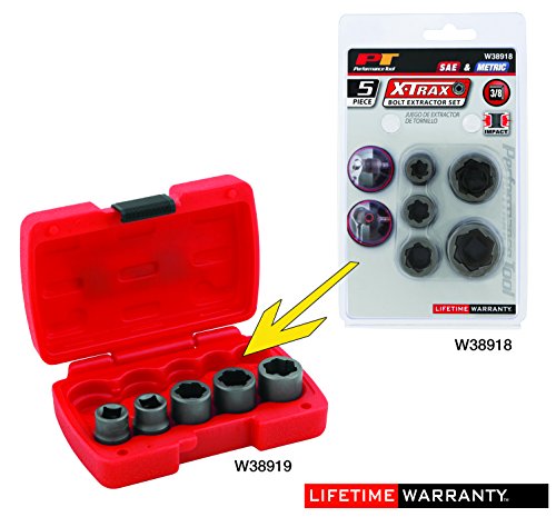 Performance Tool W38918 3/8" Dr. 5 Piece Bolt Extractor Set (Metric/SAE)