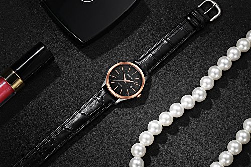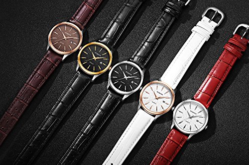 -. Feature : High Japanese quality quartz movement with analog & auto date display, keep precise time / Women fashion casual business style watch,Calendar round dial,alloy case,leather bracelet,steel back,hardlex watch mirror / Adjustable steel pin buckle makes watchband adjustment easily,Provides durable and comfortable wearing experience / Suitable for every occasion (outdoor, business, party), great gifts for families,friends and yourself / 3 ATM life Water resistant, please avoid bathing, swimming or long time water-related work