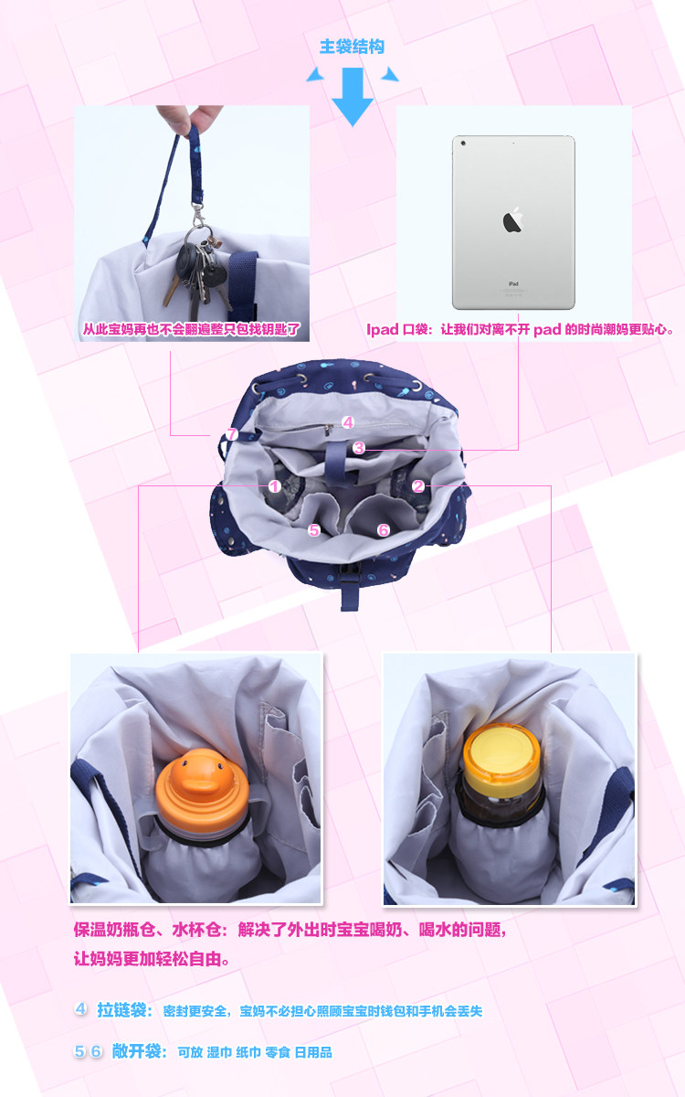 妈咪包双肩大容量 时尚妈妈包 防水妈咪包 女双肩背包