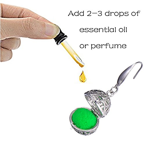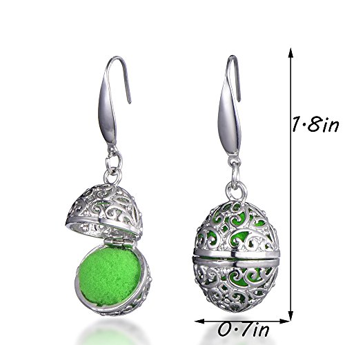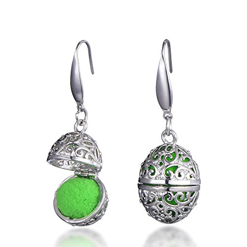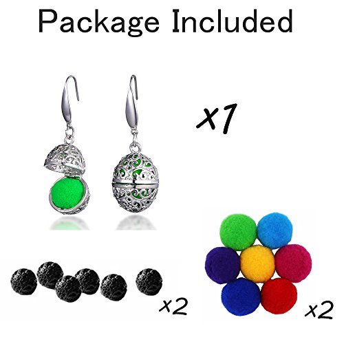 Oval Locket Pendant Aromatherapy Essential Oil Diffuser Earrings with Lava Stone(Rhodium Plated)