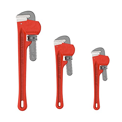 - QUALITY REPAIR TOOL – Suitable for all pipe related home improvement repairs that need a tight grip, such as gas tank repair or household plumbing. The deep grooved teeth of each straight pipe wrench lock in place to provide a confident grip around smooth, round surfaces like showerheads or bathroom sinks and drains. This pipe wrench kit highlights exceptional strength but is versatile enough for professional plumbers or novice do-it-yourselfers.