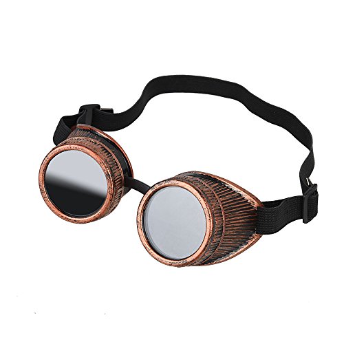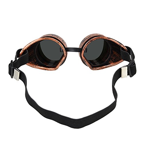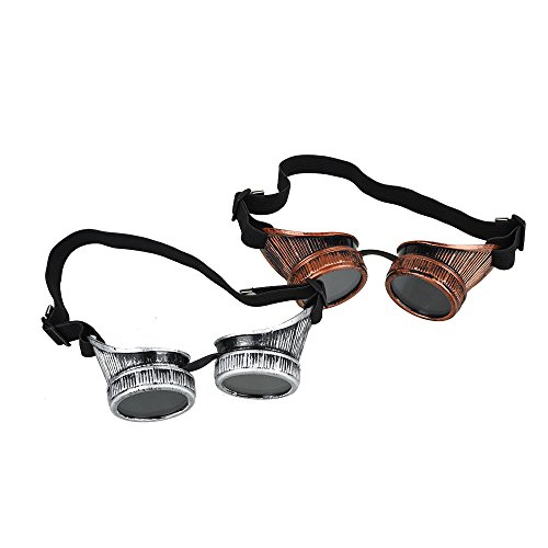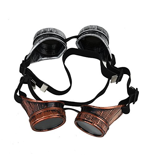 -. Feature : HIGHLY QUALITY -High Quality plastic hand coated, hand polished and hand painted with a fine attention to detail. / APPLICATION - Steampunk Cosplay, Halloween Costume, Fairs Expo, Theater plays, Jules Verne or H.G Wells impersonator / ONE SIZE FITS ALL - Each google comes with an easily adjustable head band that can fit any head size. / COLOR - The goggles colours used are steampunk ancient silver and ancient copper / If there is any problem of our product,please email us first,we will take responsibility,thanks