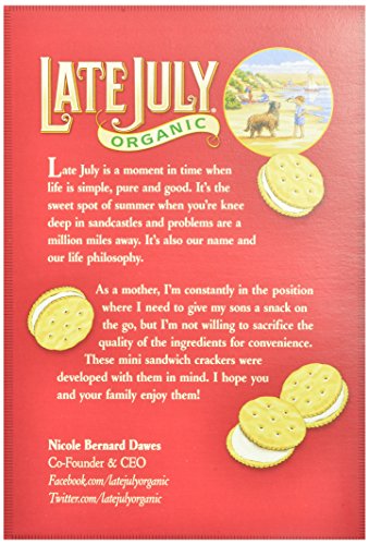 - Feature : Case of 12, 5-ounce boxes (total of 60 ounces) / Child-friendly snack of real white cheddar cheese between buttery-tasting rich crackers / USDA-certified-organic; no trans fats or hydrogenated oils; lacto-vegetarian / Late July brand name inspired by carefree mid-summer days when it's family time / Made by the Bernard family's snack-food business (founder of Cape Cod Potato Chips ) in Hyannis, MA
