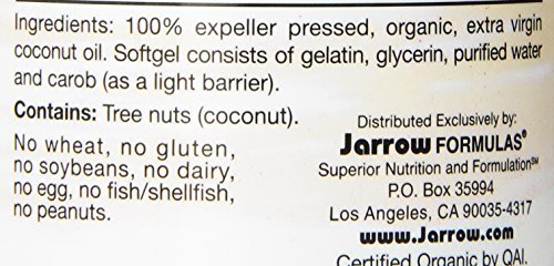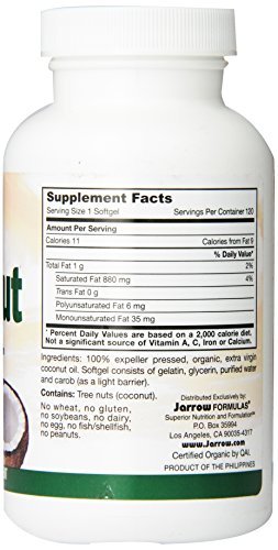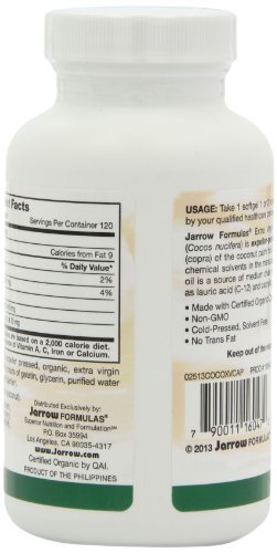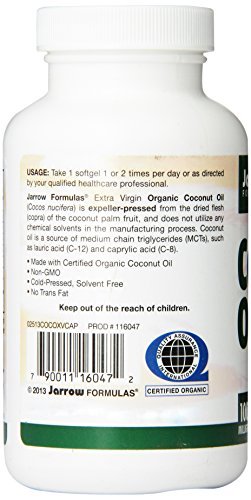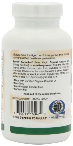 -. Feature : Jarrow Formulas Coconut Oil 100% Organic, Extra Virgin, 1000 mg, 120 Count (Pack of 4)