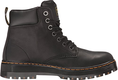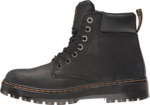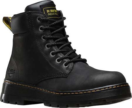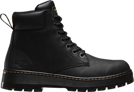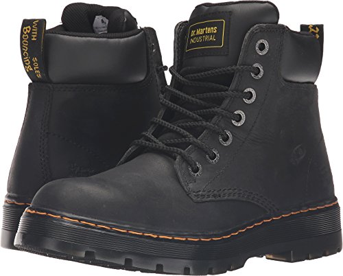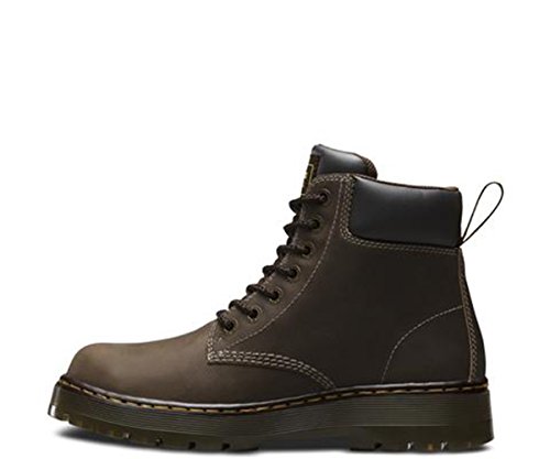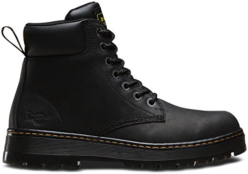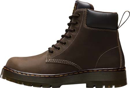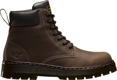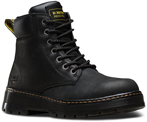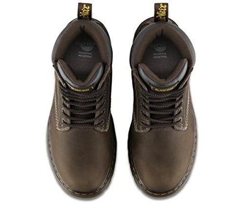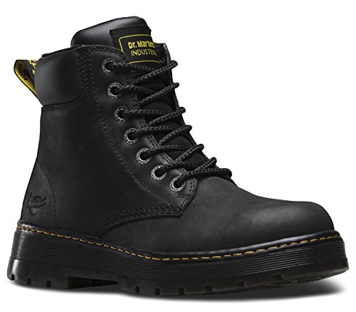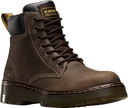Studio : Dr. Martens Publisher : Dr. Martens Binding : Apparel Product Description Industrial oiled Brown wyoming leather. Padded collar and tongue. Heavy duty metal eyelets. Breathable mesh lining. Removable EVA insole. Heel loop. Air-cushioned heavy duty PVC sole. The sole is cemented to the upper. Approx. 1' platform height. Approx. 1' heel height. Approx. 14' boot circumference. Approx. 5' boot shaft height. Meets ASTM F2413-11 M I/75 C/75 EH standards. Material: Leather. 0