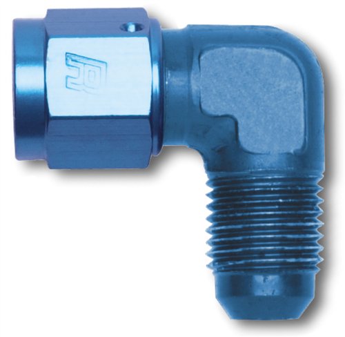 Edelbrock/Russell 614804 Blue Anodized Aluminum 90-Degree Female -4AN to Male -4AN Adapter Fitting