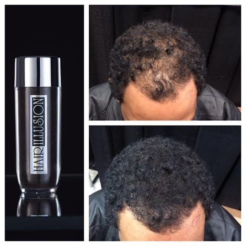 Hair illusion hair illusion is a cosmetic product made from 100% real human hair that allows men and women to conceal the appearance of thinning hair and bald spots, giving the impression of more hair. Hair illusion does not re-grow hair or stop hair loss, rather, it is only a cosmetic product that hides baldness. Hair illusion is a quick, easy and painless way, to end the suffering and replace it with a full head of hair illusion won't come off in the wind or with perspiration. To remove the product simply wash out with shampoo. For a extra hold apply a light mist hair spray. To apply hair illusion simply shake the bottle liberally over thin and bald areas. This will release thousands of microscopic color matched fibers which bond to your scalp or thin hair with magnetized static electricity. Hair illusion is different than similar products because it's made from 100% real human hair. Its not made from keratin, cotton and rayon like competitors. You will have a undetectable natural appearance because it is real hair. It will work on a bald spot or bald head if you follow the instructions: 1) apply a liquid spritz (hairspray) to the balding area. Let dry for 20 to 40 seconds. It will form with the fibers for a strong hold. 2) apply hair illusion fibers. 3) apply aerosol hair spray. It's lighter than spritz and a good way to finish. If you don't have it you can use the same spritz. Hold 10-12" away from your head. (You don't want to spray to close once the fibers are applied) 4) do not brush or comb as it is not your hair. It is a cosmetic cure. Not permanent. It will wash out when you shower. One bottle will last about 30-45 uses depending on the size of the spot and use.Feature