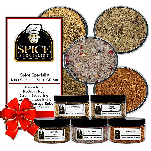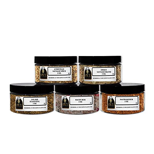 -. Feature : All Natural. Never any MSG or fillers. Our spices are 100% pure. / Sset contains Bacon Rub, Pastrami Rub, Salami Seasoning, Sweet Sausage blend,Andouille Sausage / Comes in convenient 4 ounce screw top for easy use and storage. / A perfect gift for any home cook or aspiring chef. / Our manufacturer custom packs all orders by hand so you know your spice is fresh.