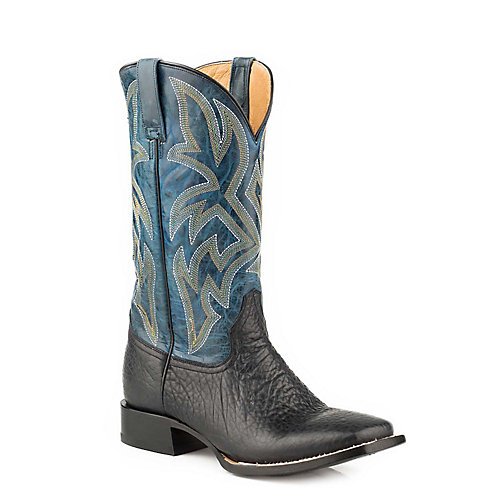Studio : Roper Publisher : Roper Binding : Apparel Product Description The Roper bull boot is great for style, fit and comfort. This wide square boot has an embossed black bull shoulder and a burnish blue leather shaft. This boot is constructed with all leather lining and a 13 inch shaft. It has a cushioned insole for added support. 0