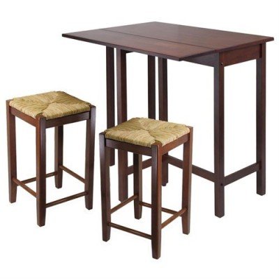 -. Title : Winsome Lynwood 3 Piece Drop Leaf Pub Set with Rush Seat Stools