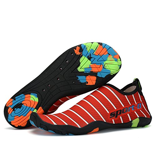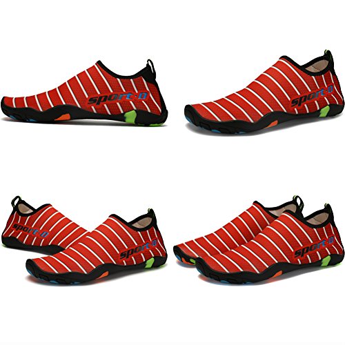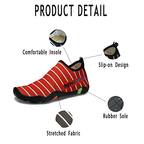 Binding : Apparel Product Description 1. about ASUGE: If you are in trouble during your shopping experience, you can: - Feel free to contact us and we will response your confusion asap. - Pose a question in Customer Questions Answers. Every customer who have bought this item will receive your question and you will get a buyer answer. 2. Size Introduction: Please measure your feet length carefully and refer to our Size Chart to choose the correct size. SIZE FOR WOMEN / MEN 8.66" foot, Suggest Size: 4.5US-women=3US-men=EU/FR 35 8.86" foot, Suggest Size: 5.5US-women=4US-men=EU/FR 36 9.13" foot, Suggest Size: 5US-women=5US-men=EU/FR 37 9.4" foot, Suggest Size: 7.5US-women=6US-men=EU/FR 38 9.68" foot, Suggest Size: 8.5US-women=7US-men=EU/FR 39 9.96" foot, Suggest Size: 9.5US-women=7.5US-men=EU/FR 40 10.23" foot, Suggest Size: 10.5US-women=8US-men=EU/FR 41 10.5" foot, Suggest Size: 11US-women=9US-men=EU/FR 42 10.78" foot, Suggest Size: 12US-women=10US-men=EU/FR 43 11.0" foot, Suggest Size: 13US-women=11US-men=EU/FR 44 11.3" foot, Suggest Size: 14US-women=12US-men=EU/FR 45 3.Features: -Comfort Breathable breathable fabrics on the upper and hole on the sole provides for superior breathability and quick drying. Helps keep your feet feel great! -LIGHTWEIGHT SLIP-ON CLOSURE One-Shoe Weight Only 200g (0.44lb) Very Flexible and Soft. -Fit for Spring, Summer and Fall A good pair of comfort aqua water shoes, beach shoes, fishing shoes, and suitable for any outdoor adventure exploring.