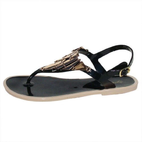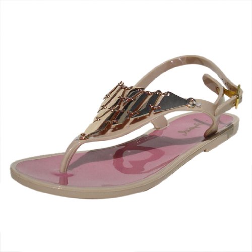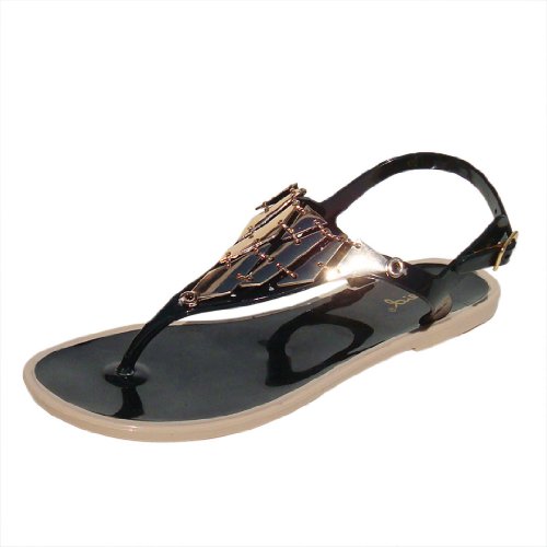 (Qupid)/Women's/Sandals/DIRECT FROM USA/Qupid Women's Buzz01 PVC Triangle Metallic Thong Flat Sandal