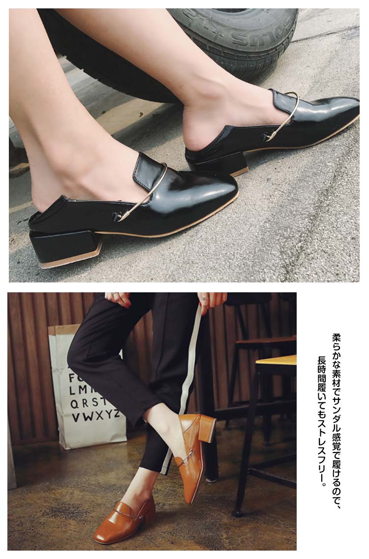 | トレンドモチーフでクールに仕上げたシューズ。踵を潰して履く事が出来るデザインを落とし込んだ、トレンド感あるスクエアトゥローファー。柔らかな素材でサンダル感覚で履けるので、長時間履いてもストレスフリー。踵を踏まずにローファーのように履きこなしたり、ソックスを合わせたりとスタイリングをグッとしめたい時に合わせやすい一足です。 | |