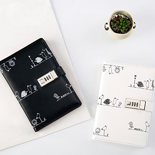 -. Feature : The cover made of high quality PU leather, feels comfortable, makes a perfect gift as a journal /business notebook / Creative idea - Combined with lined paper & blank paper(Total 128 sheets paper, included 111 sheets lined paper, 16 sheets blank paper, and one title paper), satisfied your multi needs / Combination lock is easy to use and keeps your secret safe / Card Slot & Pen Holder Design - Creates many small spaces for your accessories such as cards, pen, etc / Cover size: 5.8 X 8.7 in(14.7*22.2 cm); inner paper size: 5.6*8.3 in(14.2*21 cm)