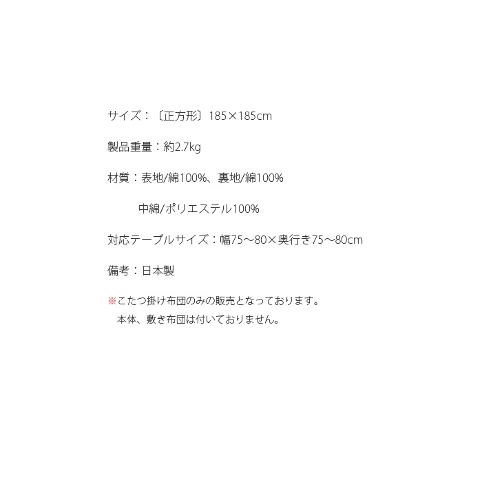 원본상품명: こたつ布? 正方形 厚掛け おしゃれ 掛け布? ?産 日本製 北? かわいい コタツ布? こたつ掛け布? こたつ コタツ 炬? こたつ布? REMI〔レミ〕正方形 185x185cm 幾何? 柄 カジュアル