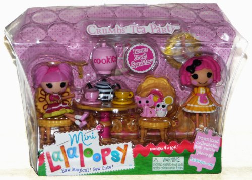 -. Binding : Toy -. Brand : Lalaloopsy -. EAN : 0035051414278 -. Label : MGA Entertainment, Inc. -. LegalDisclaimer : Not recommended for children under 4 or who still put objects in their mouth. Many small pieces -. Manufacturer : MGA Entertainment, Inc. -. Model : 1020149 -. MPN : 1020149 -. PackageQuantity : 1 -. PartNumber : 1020149 -. ProductGroup : Toy -. ProductTypeName : TOYS_AND_GAMES -. Publisher : MGA Entertainment, Inc. -. Studio : MGA Entertainment, Inc. -. Title : MGA Mini Lalaloopsy Crumbs Tea Party with Bonus Mini Jewel Sparkles (2 Dolls) -. UPC : 035051414278
