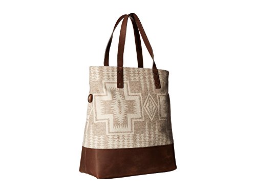 Product Description Pendleton famous 1923 pattern in versatile neutrals. Zip top, two interior pockets, removable/adjustable shoulder strap. Leather trim. Random horizontal pattern placement. 0