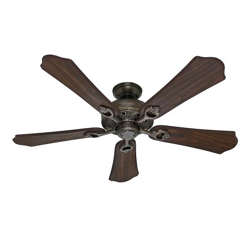 The Hunter Kensington 52-inch indoor ceiling Fan offers a traditional design with a roman bronze finish for an ideal accent to any room of your home. The 5 blades feature a reversible walnut and cherry finish, allowing you to change the fan's look without having to replace anything. Powered by a high performance, Whisper Wind Motor it delivers ultra-powerful air movement with whisper-quiet performance so you get the cooling power you want, without the noise you don't.Feature