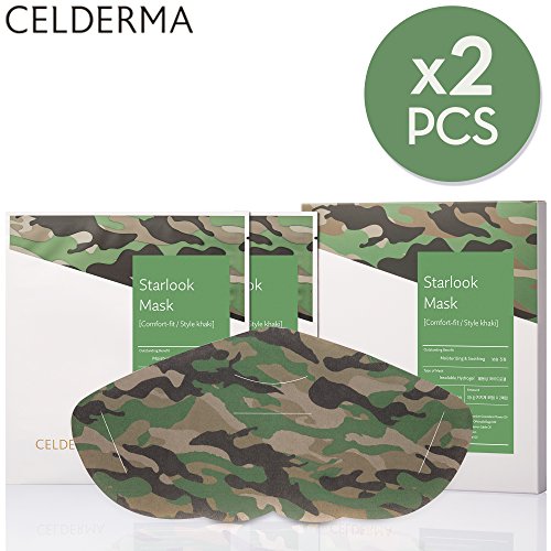 -. Title : [CELDERMA] Face Mask Pack (2 Sheets), Starlook Mask, Comfort-fit / Style Khaki, Moisturising & Soothing, Insoluble Hydrogel Mask