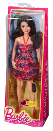 -. Binding : Toy -. Brand : Barbie -. EAN : 0782361053771 -. Feature : Doll is dressed in a fabulous fashion / Dresses and a top-and-caP.R.I outfit feature trendy designs and vibrant P.R.Ints / Accessories include matching bags, jewelry and heels / Mix and match with other Fashionistas fashions (each sold separately) / A great gift that any girl is sure to love -. IsAdultProduct : 0 -. ItemPartNumber : BHY14 -. Label : Mattel -. LegalDisclaimer : Actual product packaging and materials may contain more and/or different information than is shown here. We recommend that you do not solely rely on the information presented here and that you always read labels, warnings, and directions before using a product. -. Manufacturer : Mattel -. Model : BHY14 -. MPN : BHY14 -. PackageQuantity : 1 -. PartNumber : BHY14 -. ProductGroup : Toy -. ProductTypeName : TOYS_AND_GAMES -. Publisher : Mattel -. Studio : Mattel -. Title : Barbie Fashionista Raquelle Doll, Pink and Purple Dress -. UPC : 782361053771 -. Warranty : No Warranty
