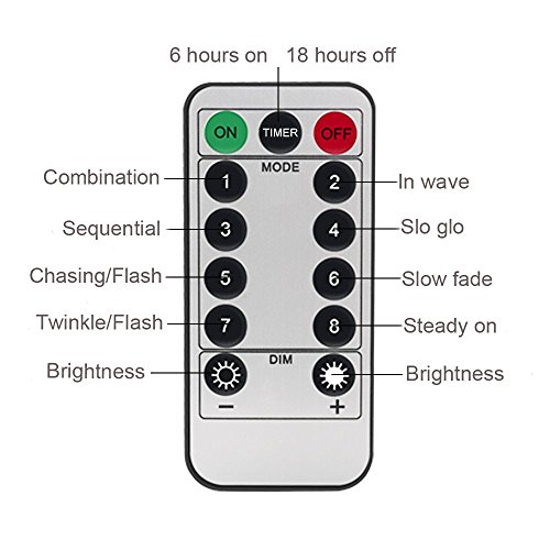 - 8 Lighting Mode: 7 different flashing patterns including Twinkle, Slow Fade, Flash, Strobe, and a steady on mode for you to choose; set a light show with the click of a button with the remote control.