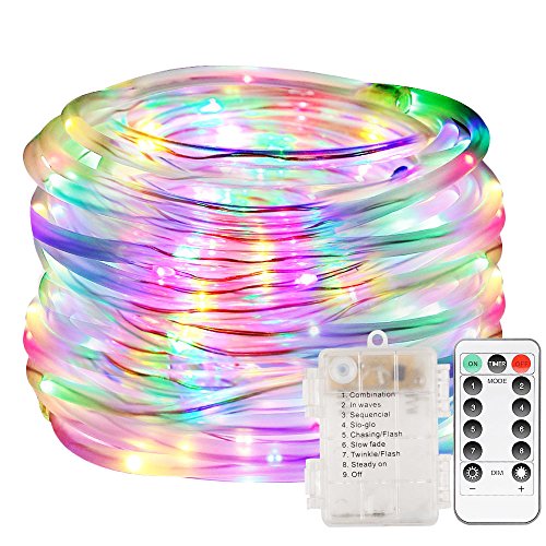 Smartdio LED Rope Lights Operated Waterproof 33ft 100 Leds String Lights with Remote Timer 8 Mode Dimmable Multi-Color Fairy Lights For Outdoor Indoor Home Decoration