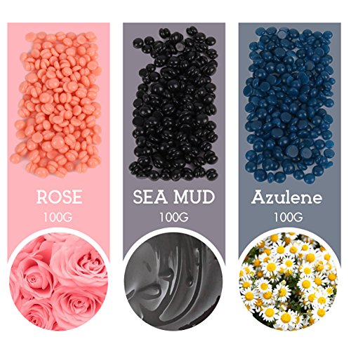 Wax Warmer, Upgraded Wax Warmer Hair Removal Kit with Pack 3 Flavors Hard Wax Beans + 10 Wax Applicator Sticks, Professional Wax Heater Pot Self-waxing Spa in Home