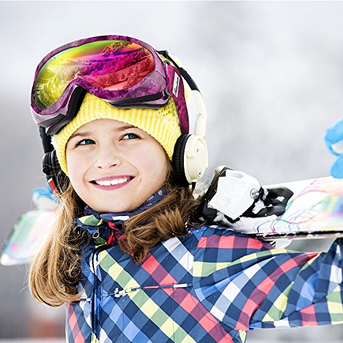 HELMET COMPATIBLE KIDS SKI GOGGLES: Snow goggles compatible with any ski helmet. Suitable for boys & girls 6 years and older. Available in several different colorful lenses and frame options.