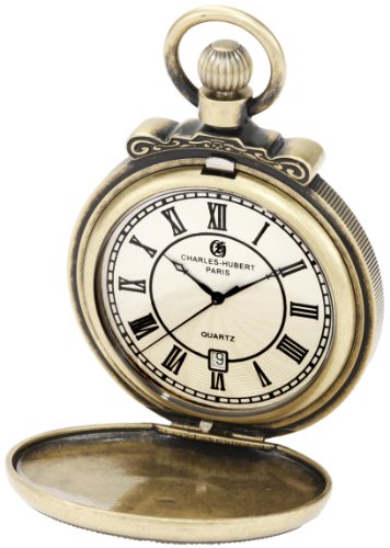 -. Title : Charles-Hubert, Paris 3864-G Classic Collection Gold-Plated Antiqued Finish Hunter Case Quartz Pocket Watch