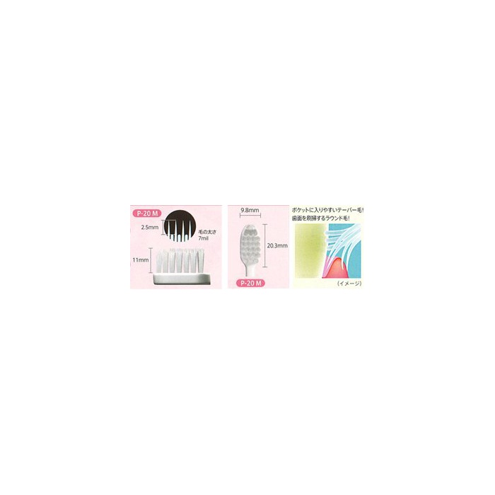 P-20M(《피세라》)서는《루시로》칫솔의 배 리오 타입(P-10M/S)를 보다 컴팩트한 헤드로 하는 것에 성인 남성에 비해 입이나 손이 어린 여성에서도 무리 없어 효율적인 brushing를 행할 수 있는 바와 같이(하도록) 설계 하고 있습니다.