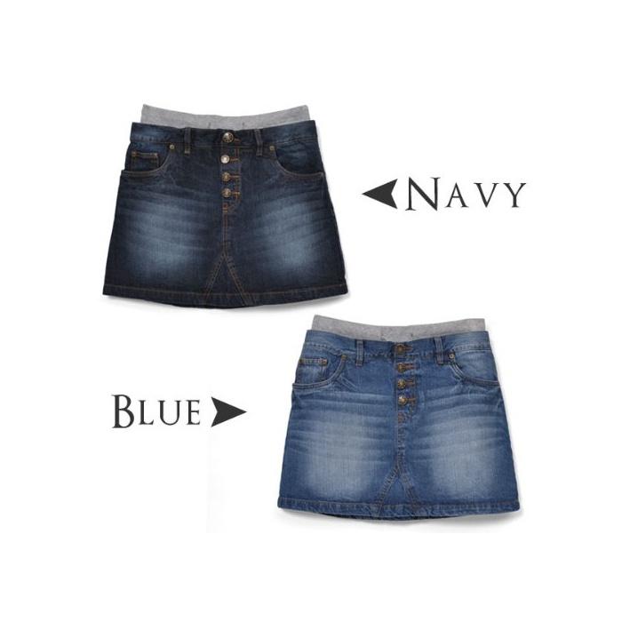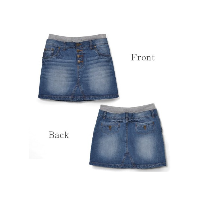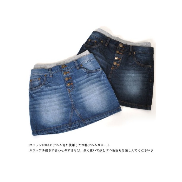 FashionLetter 웨스트 리브 데님 쇼트 스커트 데님 스커트 레이디스 캐주얼 11온스 k020