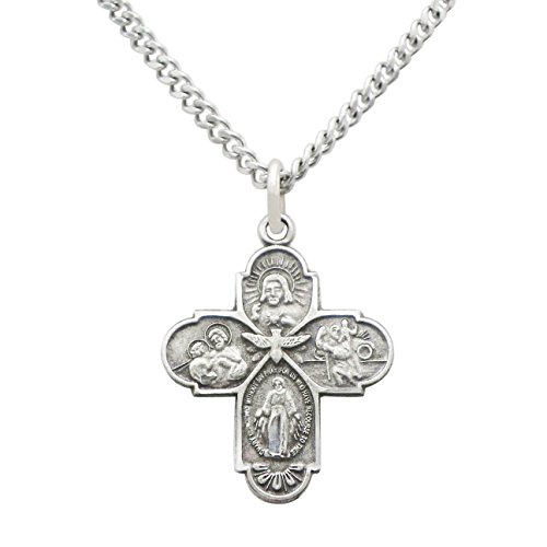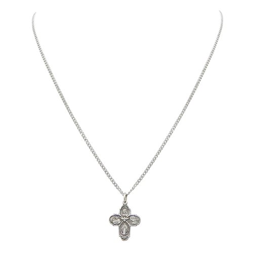 -. Binding : Jewelry -. Brand : Rosemarie Collections -. Department : womens -. Feature : Traditional cross shaped medal features Sacred Heart, St. Joseph, St. Christopher, and the Miraculous Medal images / Pewter pendant on quality stainless steel curb chain with sP.R.Ing ring clasp / Necklace length 18", Medal size 0.7" width X 0.8" length / This Four Way Medal is a great religious gift for a special occasion / Packged in a gift box -. Label : Rosemarie Collections -. Manufacturer : Rosemarie Collections -. Model : HC-P144-6X18 -. MPN : HC-P144-6X18 -. PartNumber : HC-P144-6X18 -. ProductGroup : Jewelry -. ProductTypeName : FASHIONNECKLACEBRACELETANKLET -. Publisher : Rosemarie Collections -. Studio : Rosemarie Collections -. Title : Rosemarie Collections Religious Gift Small Four Way Cross Pendant Necklace 18"
