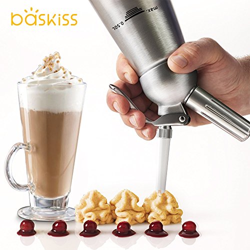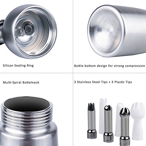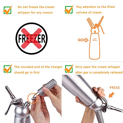 - STRONG CONSTRUCTION - This cream whipper features a premium solid aluminum body and head, and interior is lined with edible epoxy resin, durable for long time using. Works with leading brands of chargers - compatible with 8g N2O chargers (not included).