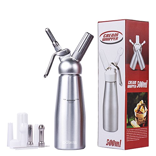 Professional Whipped Cream Dispenser, Aluminum Cream Whipper, 3 Sainless Steel Nozzles and 3 Plastic Pastry Tube, for Baking and Beverages (500ml)