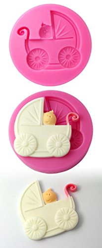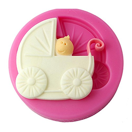 FOUR-C Silicone Cupcake Mold Baby Carriage Fondant Mould Color Pink